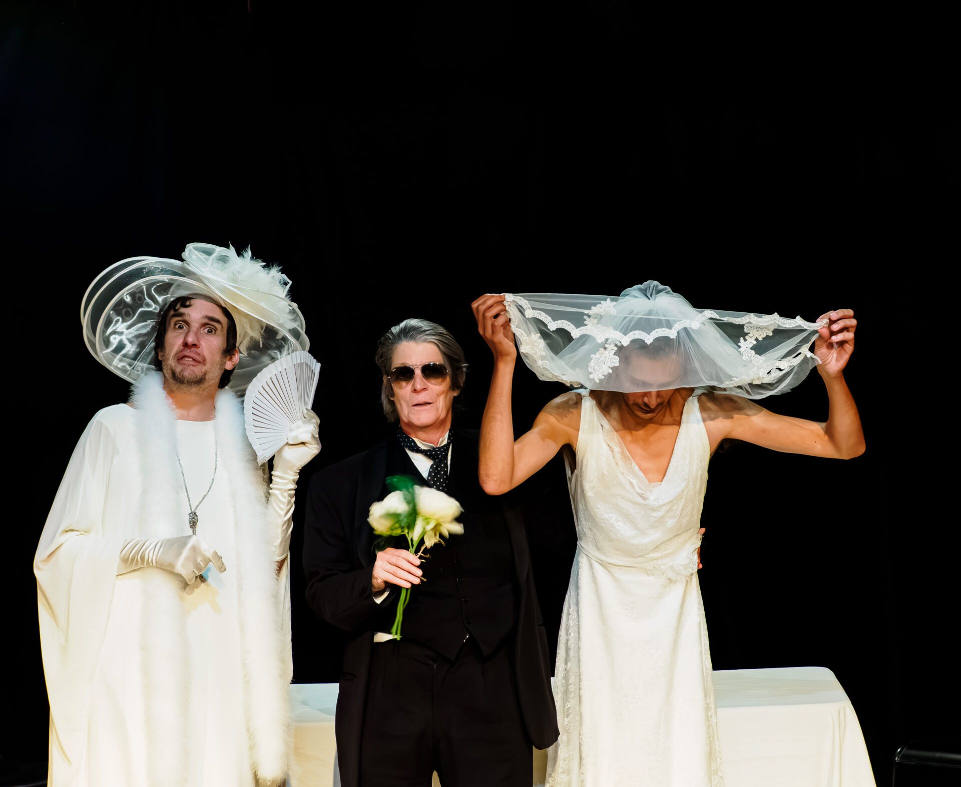 Costumes, discours, cérémonies, droits et devoirs, traditions, usages, coutumes, de la cérémonie à la mairie jusqu’à l’ouverture du bal, nous revisitons le pathétique et le barbare, le tragique et le comique. Le kitch et l’éternel de la cérémonie de mariage.