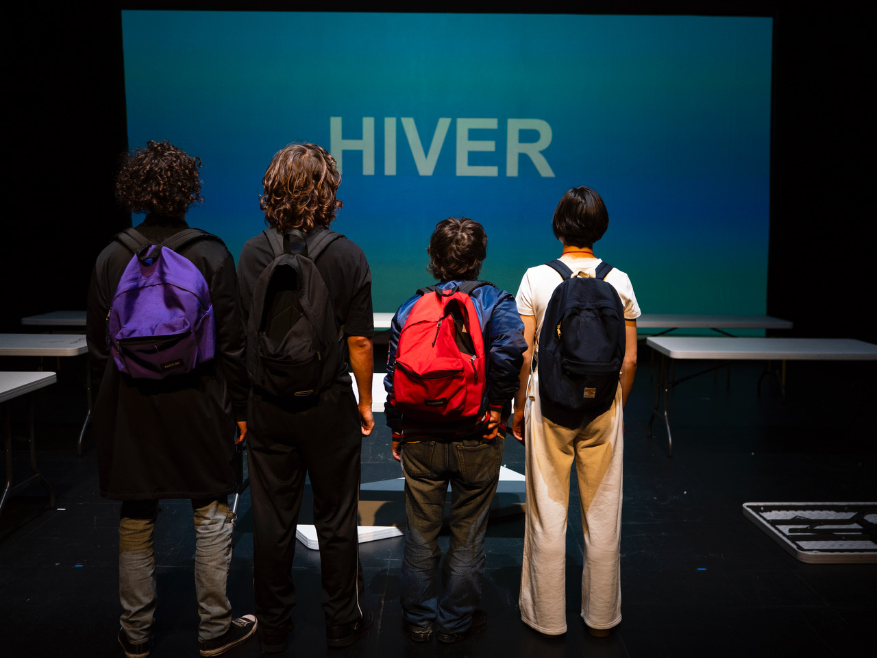 Texte Marcos Caramés-Blanco | Mise en scène Nathalie Bensard | interprètes Iliane Adjali, Madeleine Delaunay, Nils Ruf Carrio, Lila Sanchez Ensemble 32 | Création lumière Justine Ciclet